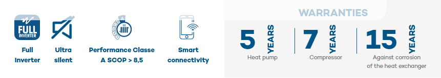 Jet Max heat pumps feature Full Inverter technology and achieve SCOP A, guaranteeing maximum efficiency and energy savings.