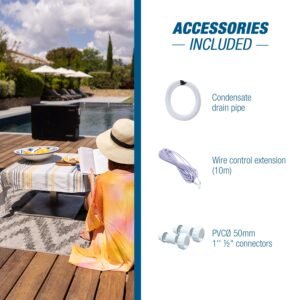 - Intelligent connectivity: Manage your heat pump remotely via Wi-Fi and the app, and receive maintenance notifications for optimal monitoring thanks to its connection to the Cloud.