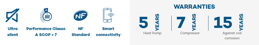 - Peace of mind: NF certification, a guarantee of quality, and 5-year warranty on the PAC.